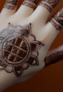 Check out that photo up there cool, right? That’s my hand and my design! It’s full of flowers, patterns, and swirls that I carefully created with henna. The stain is super dark, which means the paste was top quality no shortcuts here! The pretty plant in the background? Just me trying to be fancy. But the real star is that design in the middle of my palm it took time, love, and steady hands (and maybe some chai breaks!).