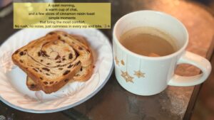 A quiet morning, a warm cup of chai, and a few slices of cinnamon raisin toast simple moments that bring the most comfort. No rush, no noise, just calmness in every sip and bite. πβ